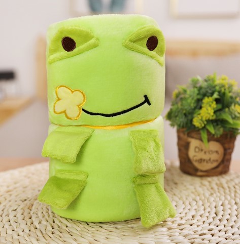 휴대용 극세사 동물담요 연두개구리